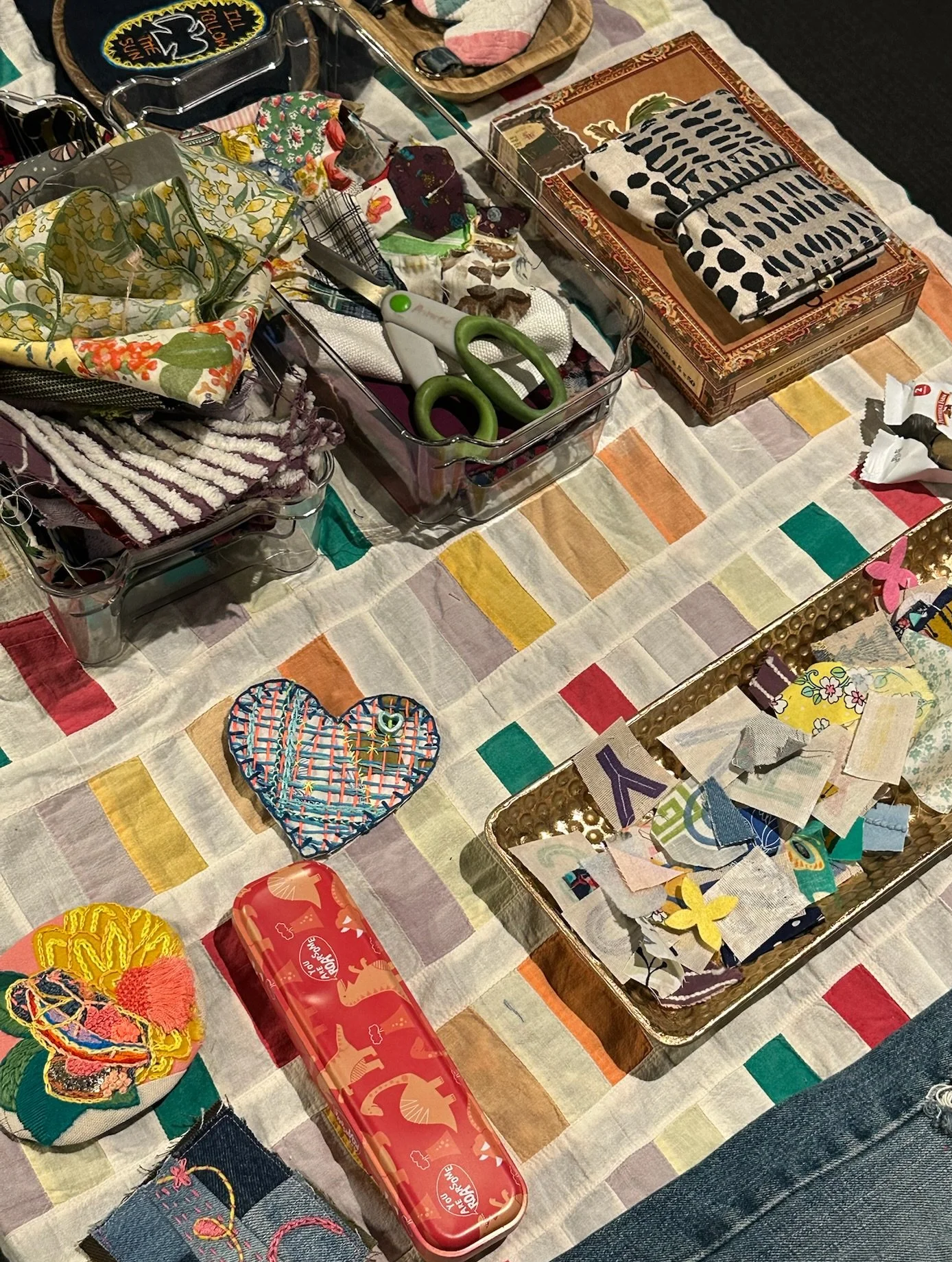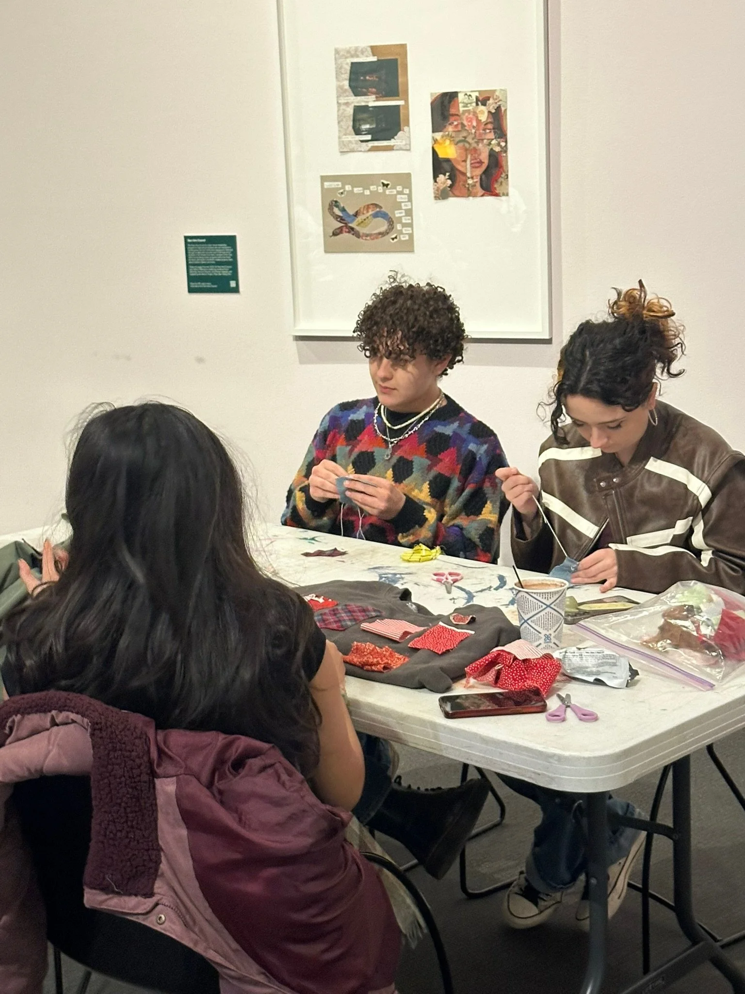 Guided by artist Aimee Hagedorn, the workshop explored how mending and customization can keep garments in use longer. Participants learned stitching, patching, and embroidery techniques, created unique patches from repurposed fabrics, and practiced restoring well-loved clothing instead of throwing it away. The afternoon paired sustainability with creativity, plus hot chocolate and treats!